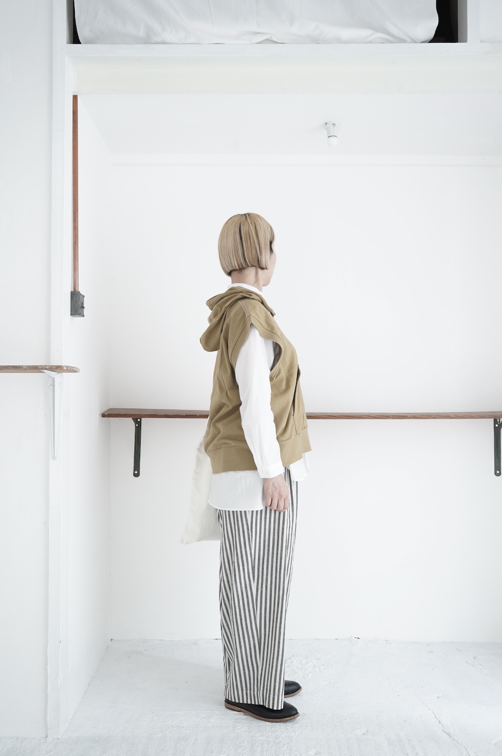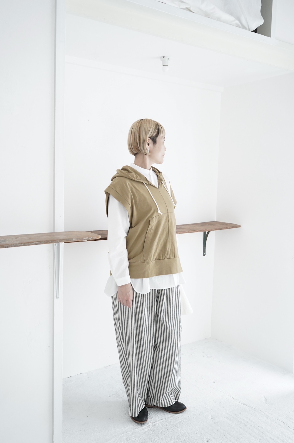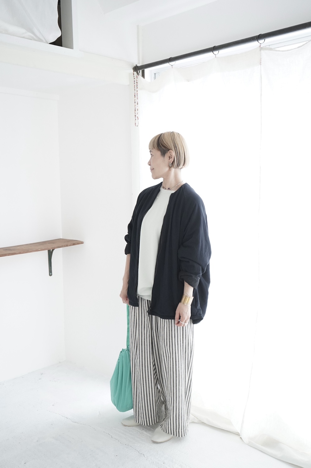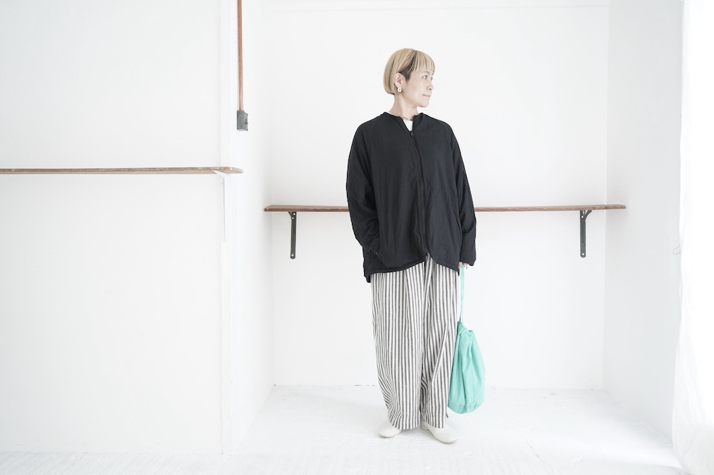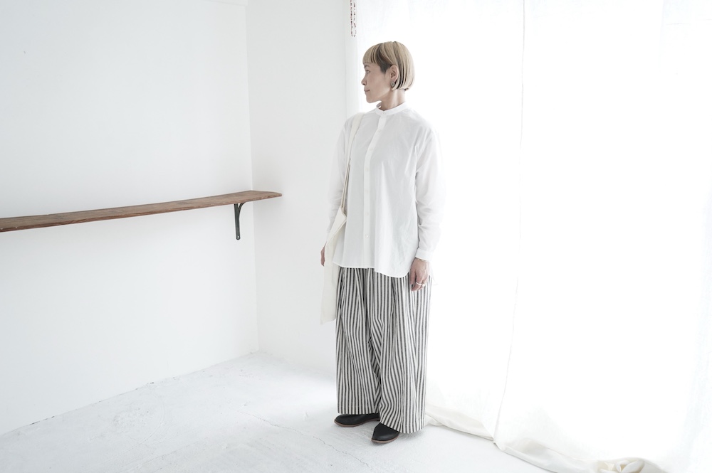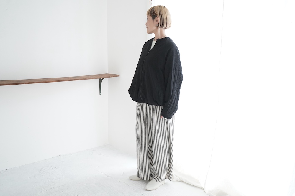 デザインは同ブランドらしいワイドなフロント3タックでボリュームがあり、ややテーパードしたシルエットが素敵なワイドパンツです。トップスの合わせ次第で綺麗めにもカジュアルにも使いやすいフルレングスのエブリデーパンツになりそうです。