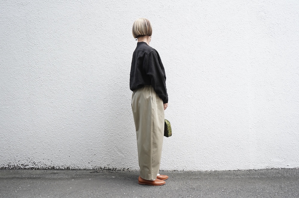 1900年〜1920年台のクラシックなもの作りに共感しながら、自身のフィルターを通すことで引き算を繰り返し、クラシックを程よく残した現代服に仕立てています。