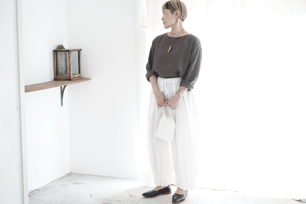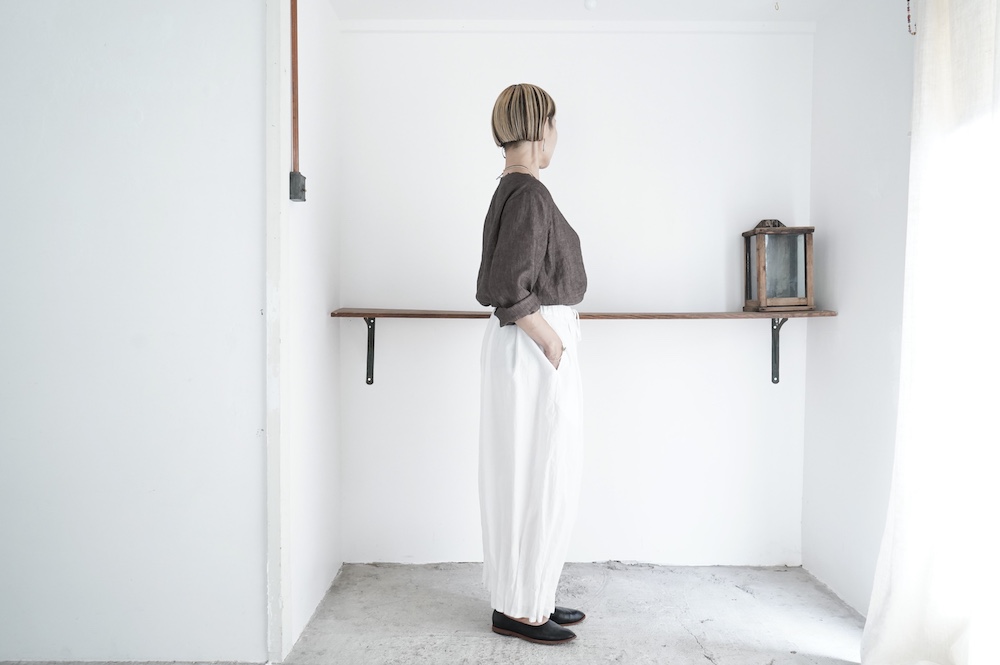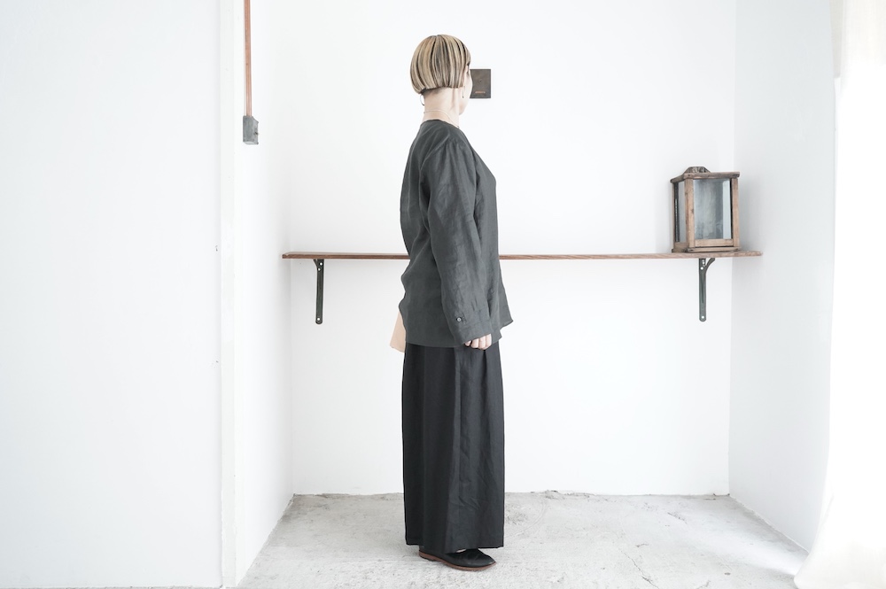 1900年〜1920年台のクラシックなもの作りに共感しながら、自身のフィルターを通すことで引き算を繰り返し、クラシックを程よく残した現代服に仕立てています。