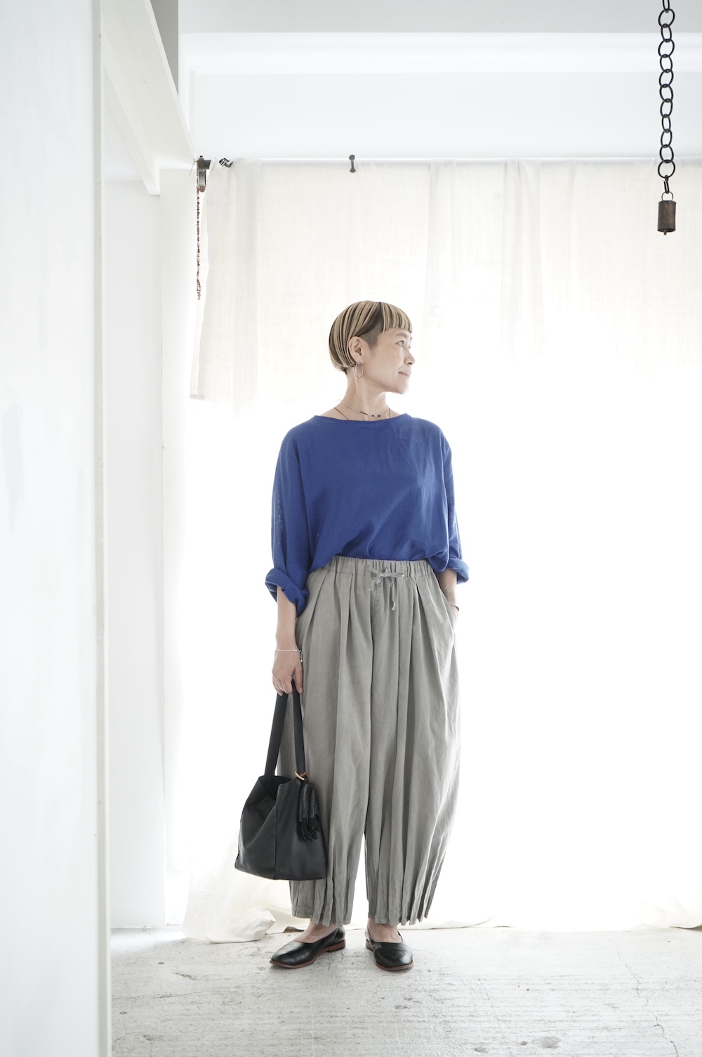 FACTORYのプリーツパンツのグレーに合わせて