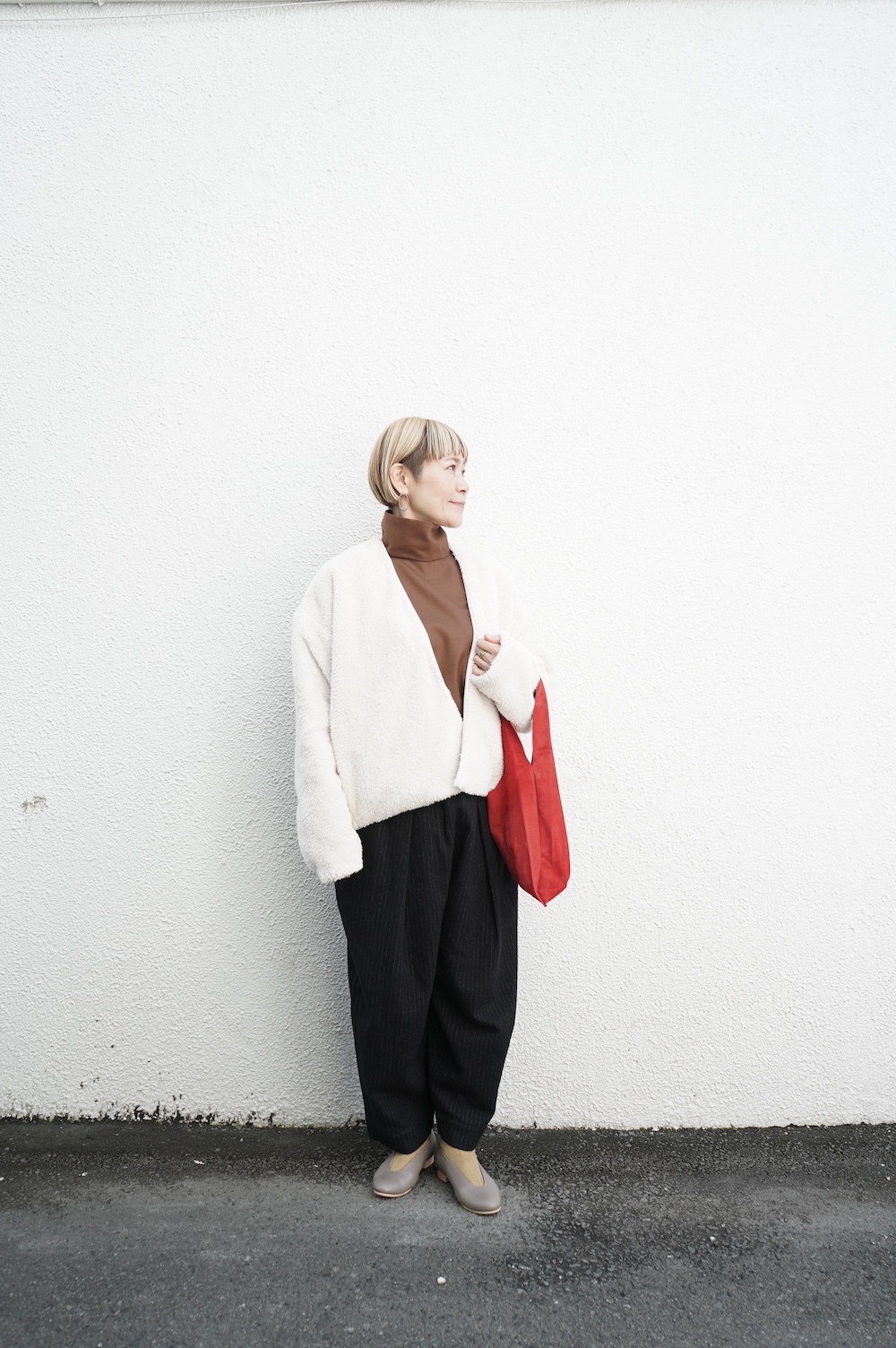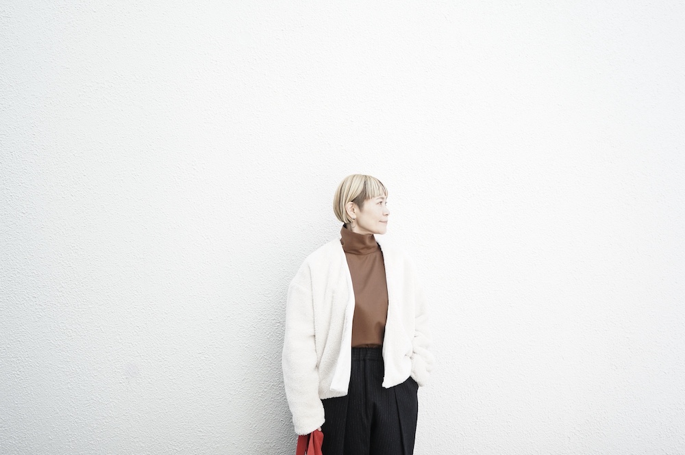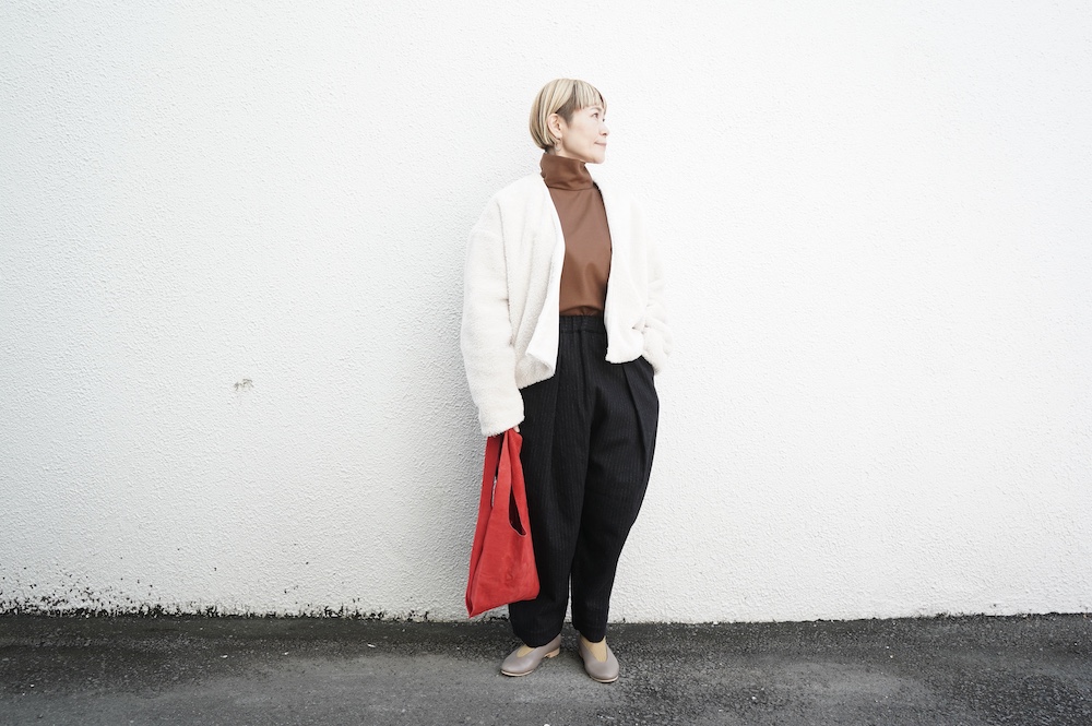 Honneteのボアカーディガンを羽織って