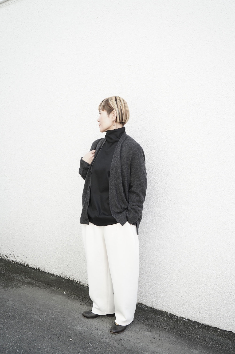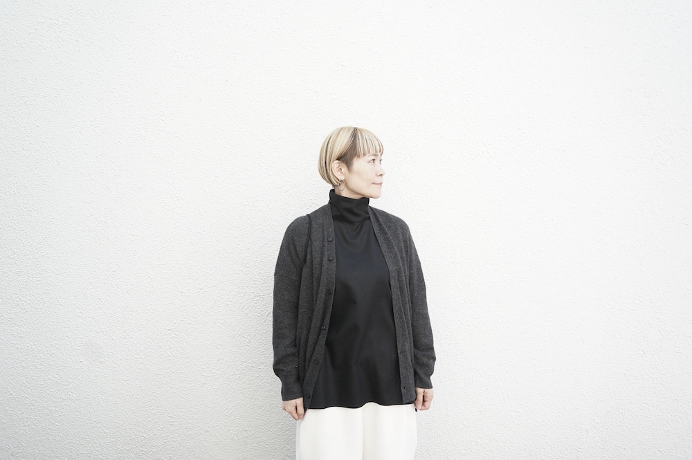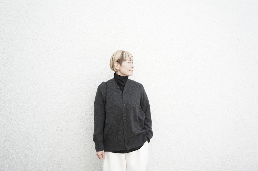 NOCONTOLORAIRのカシミアカーデを羽織って