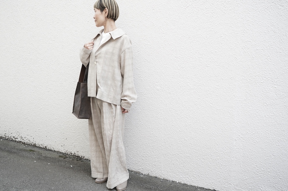 同素材のジャケットと合わせてセットアップで