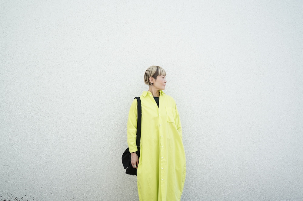 イエロー着用画像 モデル身長155cm