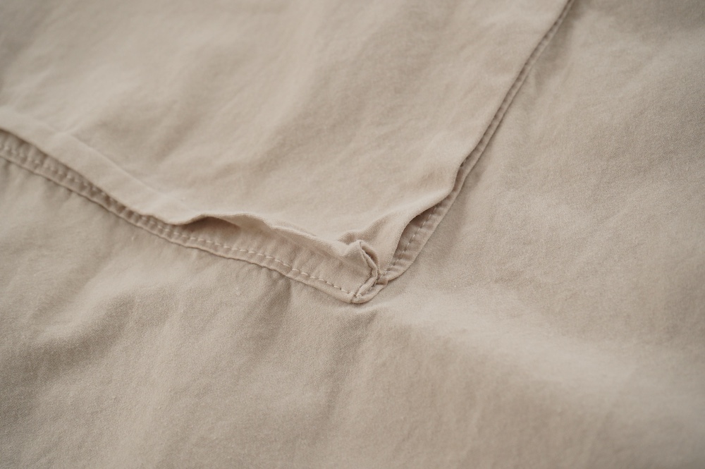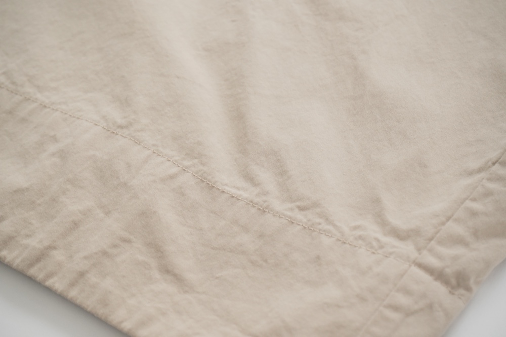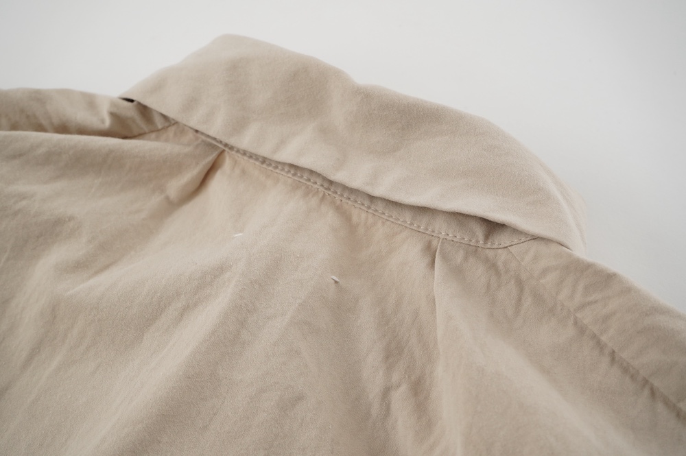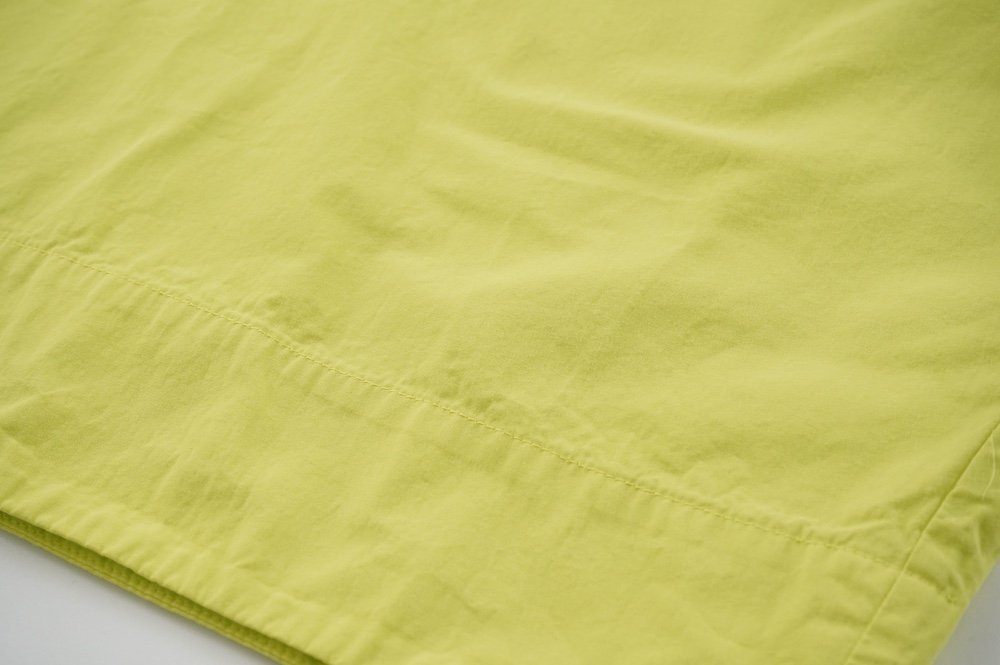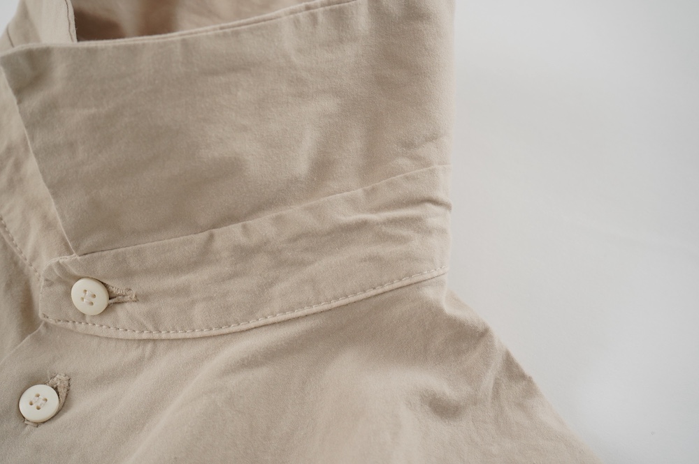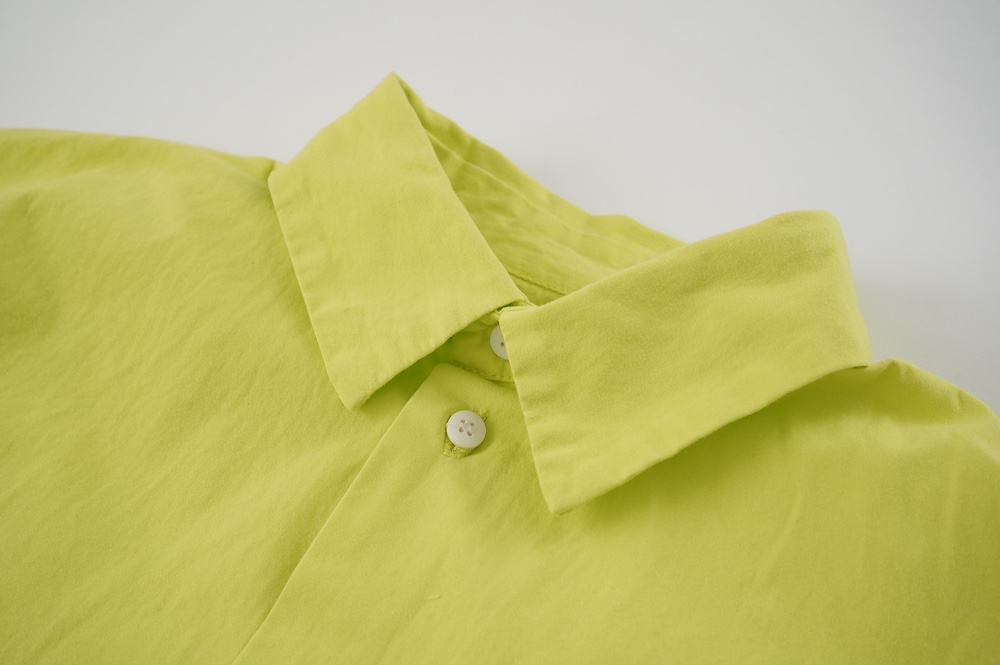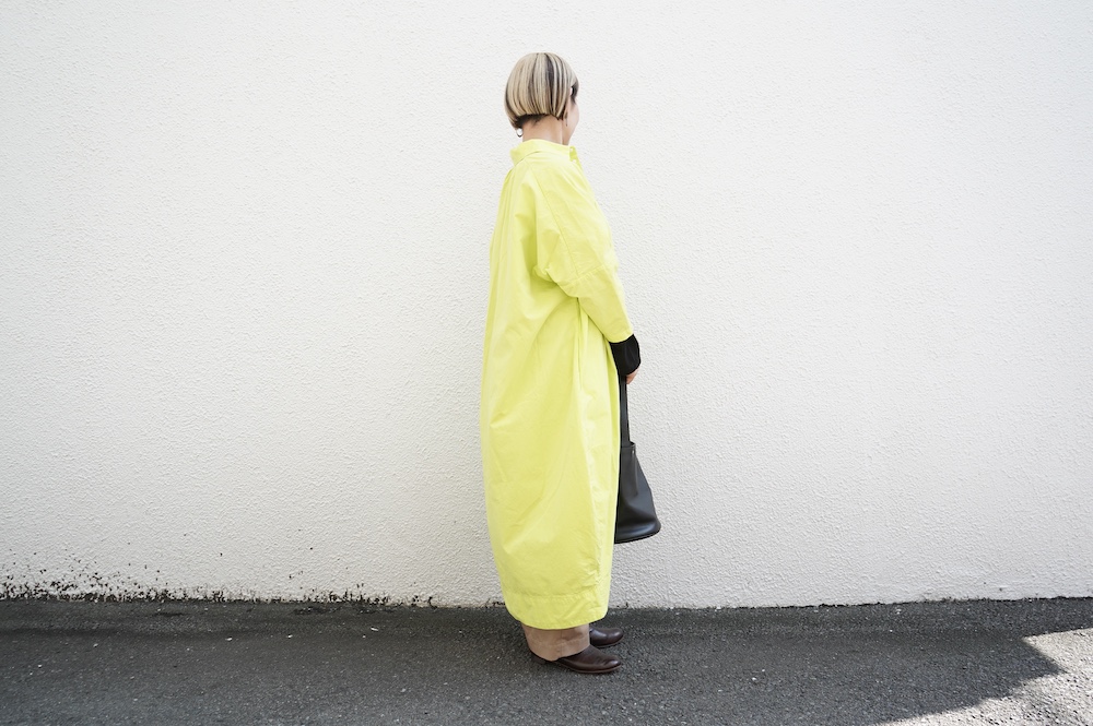 キタンのドレス。現代のように化学繊維がなかった時代に、ミリタリーウェアによく使用をされていた高密度なコットンウェザークロスを使用。適度にハリがあり、凛とした高密度コットン生地です。カラーは鮮やかなイエローと、紅茶の染料をベースに鉄媒染したティーベージュの2色展開です。