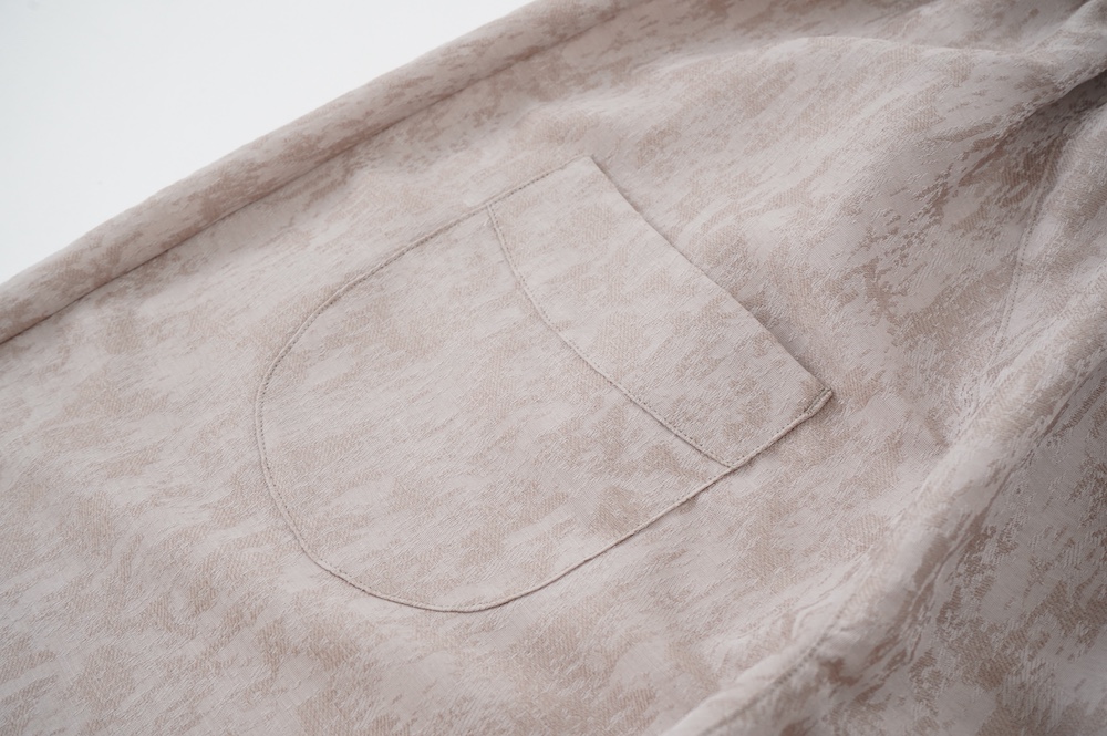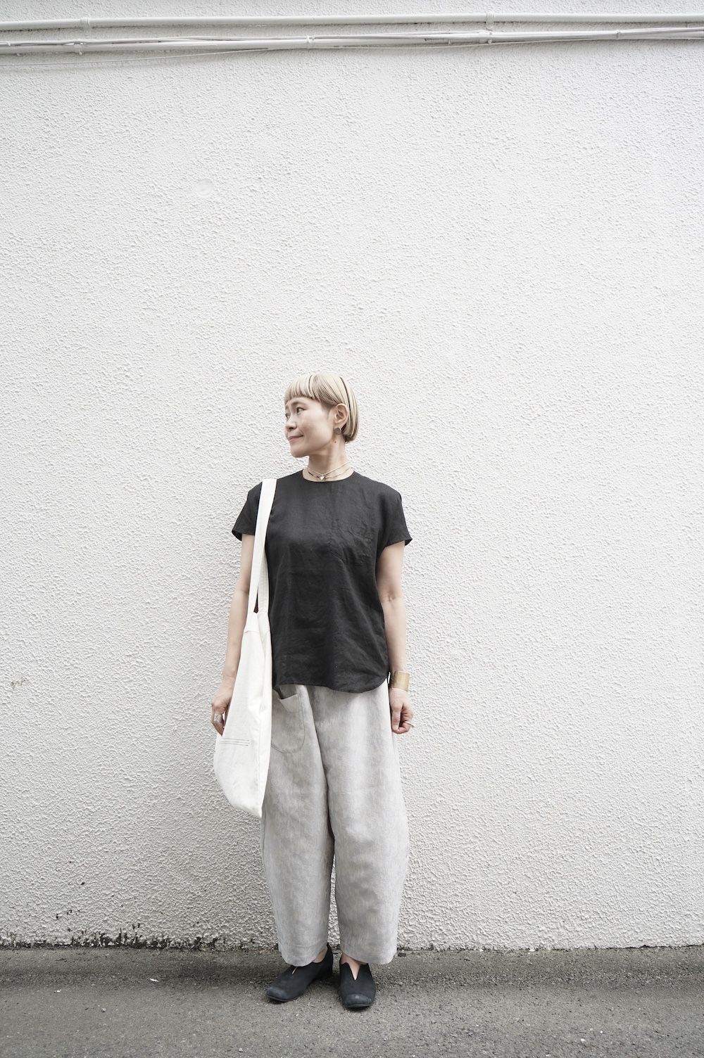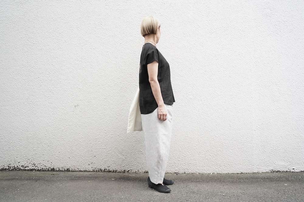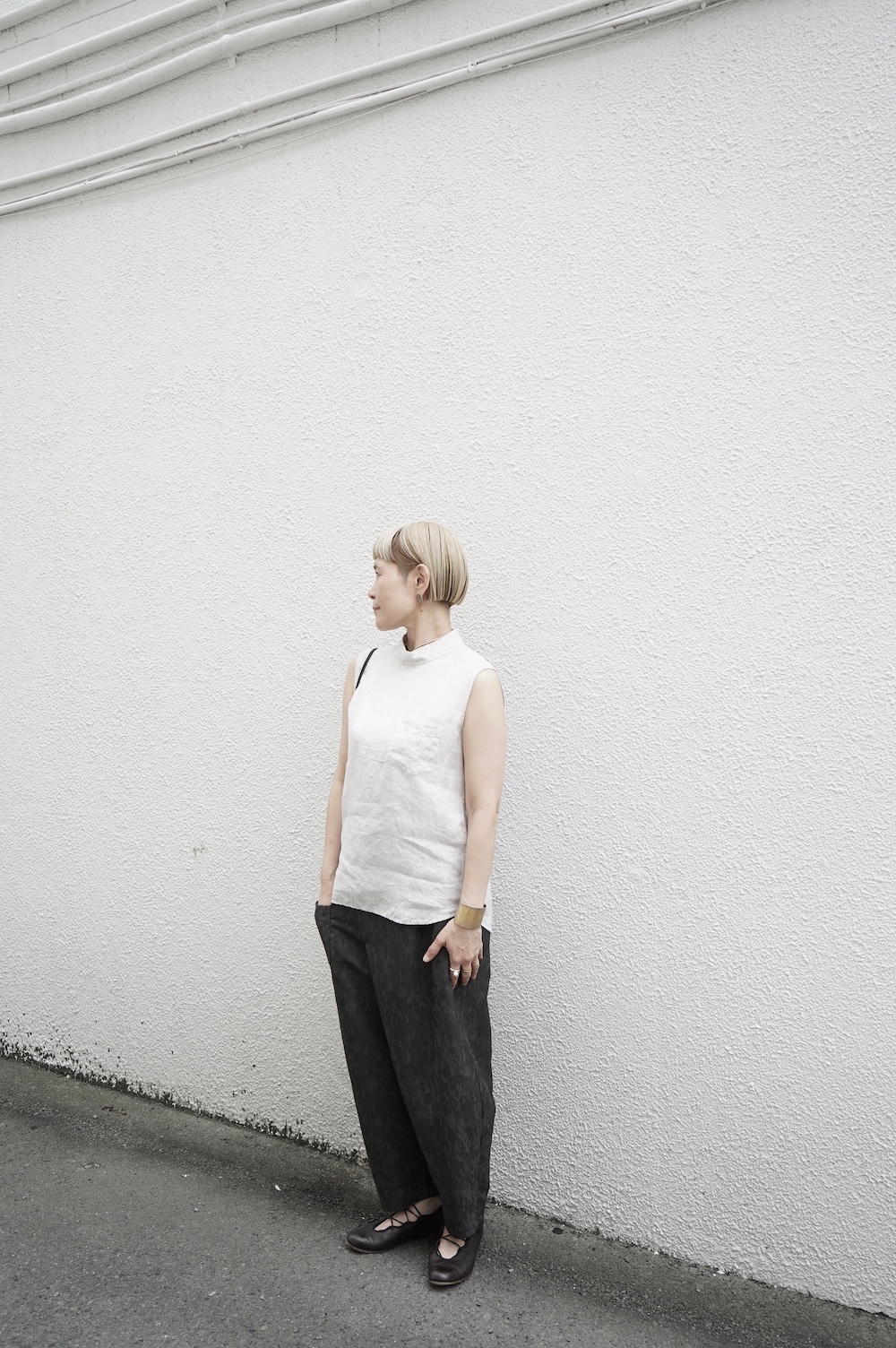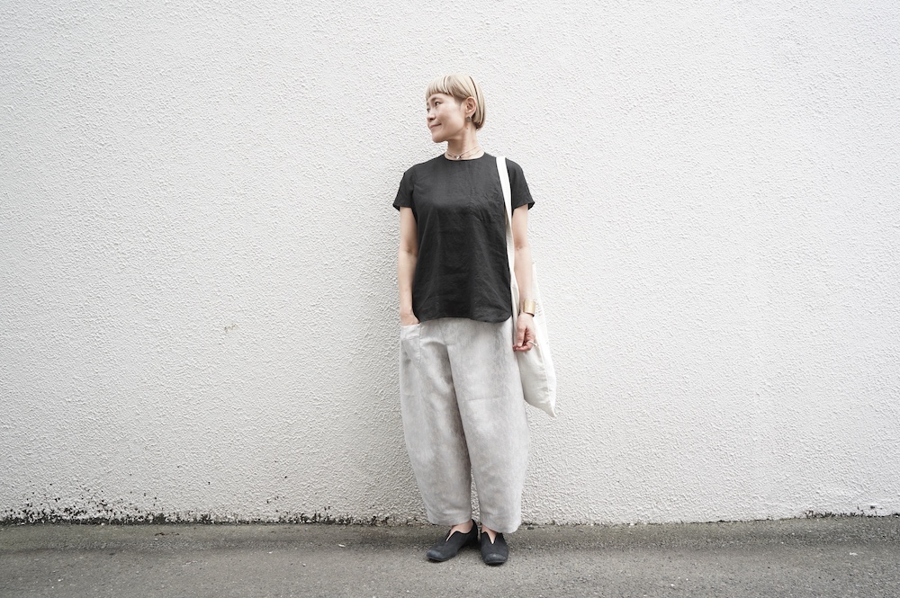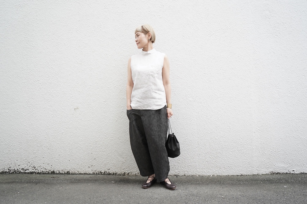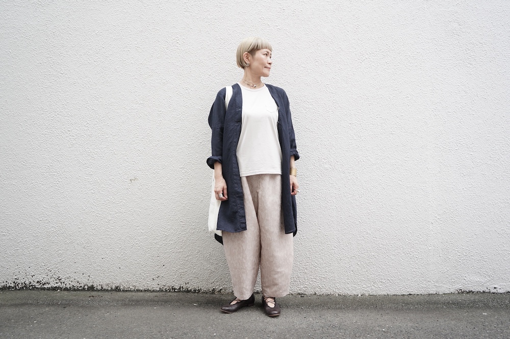 人と繋がることで生まれる価値観を大切に、モノを大切に活動していきたいという思いを込めて、”結”というブランド名で2020年1月にスタート。お洋服についているブランドラベルには、象形文字で”結”が表現されています。手作業にもこだわり、ブランドラベルのワッペンは1つずつ手作業でミシン刺繍・取り付けまた機械付けが主流の釦も手作業でしっかりと行われています。とても真摯に日常に寄り添う服作りをされている、これからも楽しみなブランドです。
