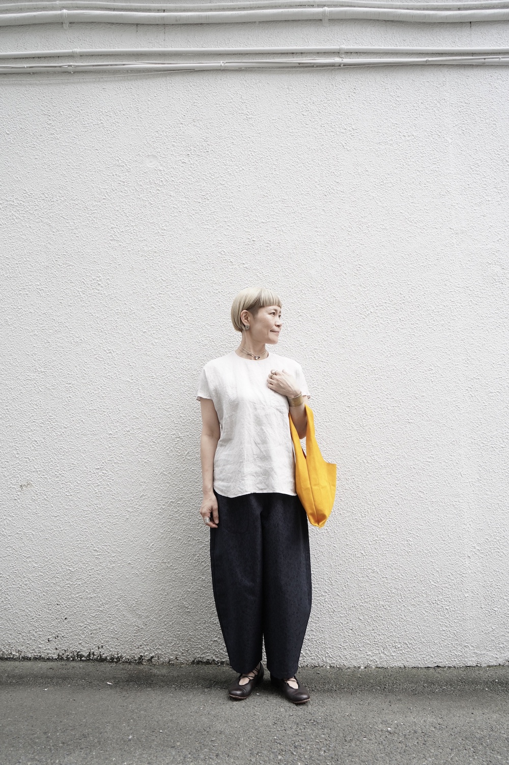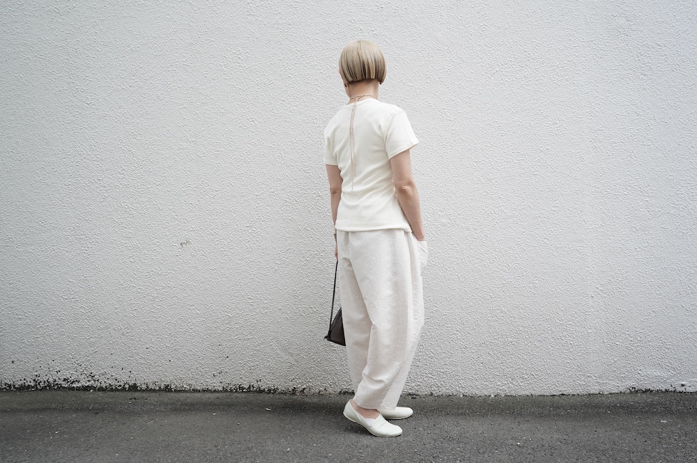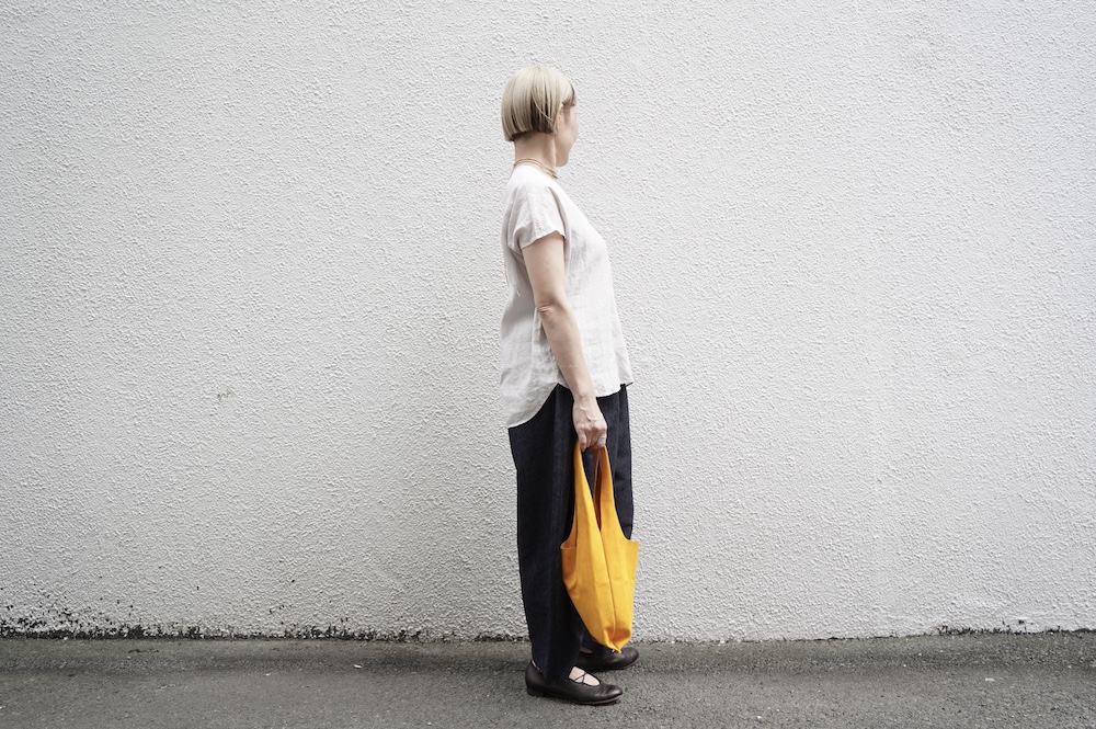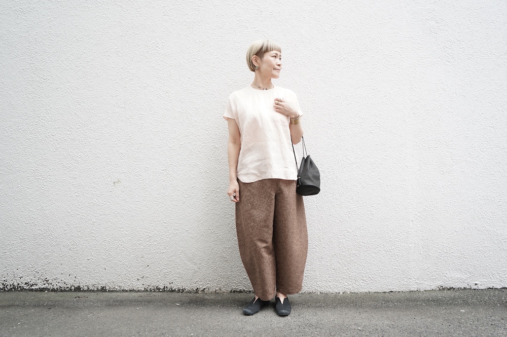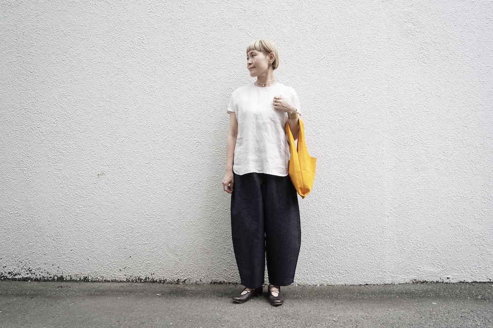 人と繋がることで生まれる価値観を大切に、モノを大切に活動していきたいという思いを込めて、”結”というブランド名で2020年1月にスタート。お洋服についているブランドラベルには、象形文字で”結”が表現されています。手作業にもこだわり、ブランドラベルのワッペンは1つずつ手作業でミシン刺繍・取り付けまた機械付けが主流の釦も手作業でしっかりと行われています。とても真摯に日常に寄り添う服作りをされている、これからも楽しみなブランドです。