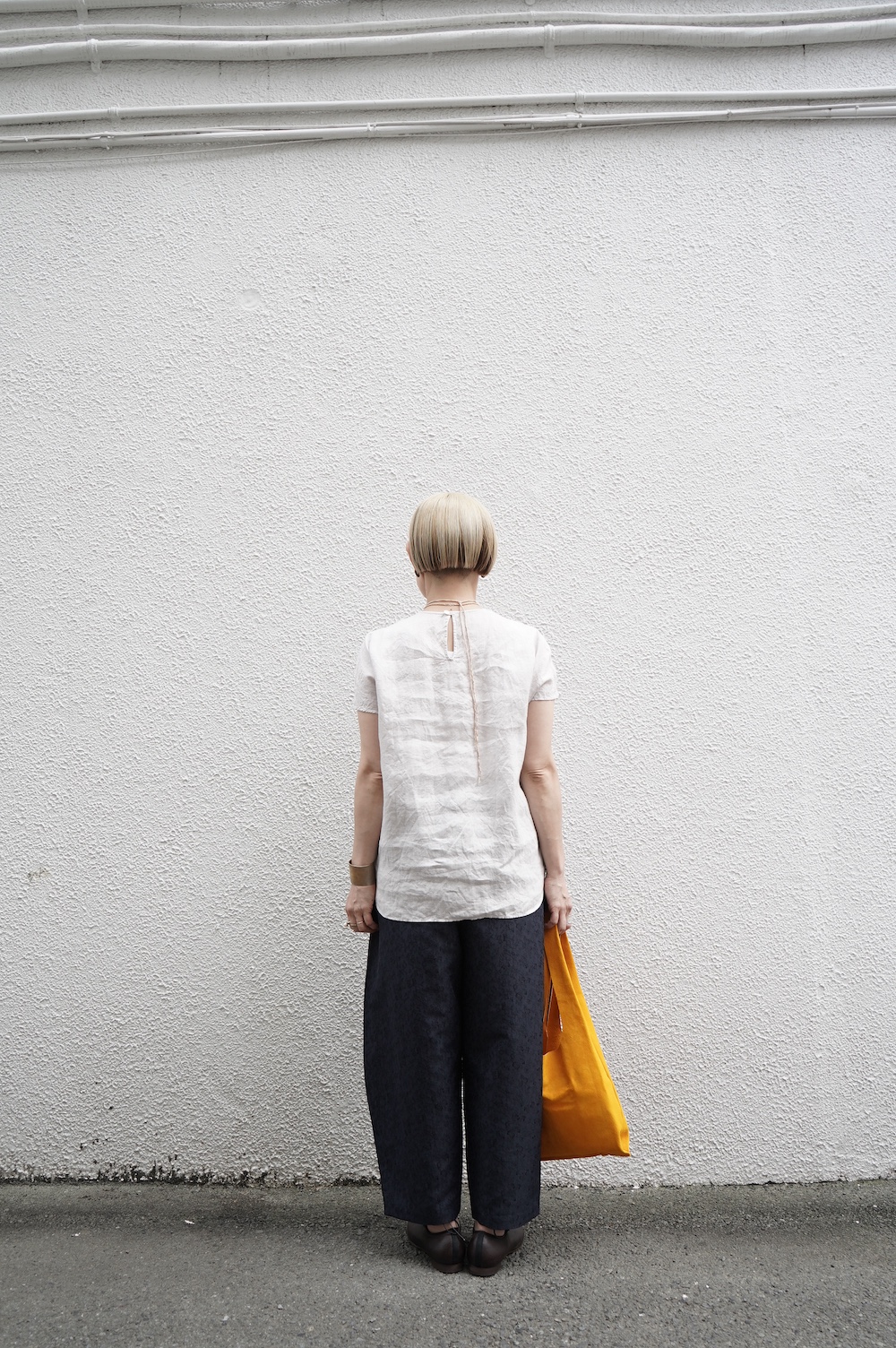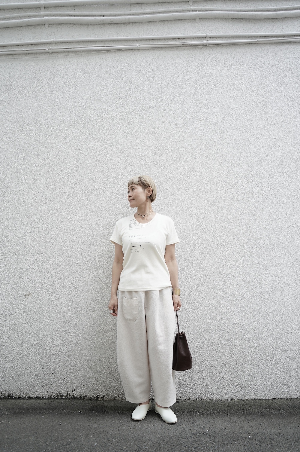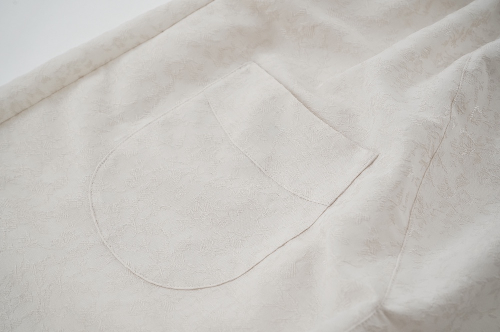 人と繋がることで生まれる価値観を大切に、モノを大切に活動していきたいという思いを込めて、”結”というブランド名で2020年1月にスタート。お洋服についているブランドラベルには、象形文字で”結”が表現されています。手作業にもこだわり、ブランドラベルのワッペンは1つずつ手作業でミシン刺繍・取り付けまた機械付けが主流の釦も手作業でしっかりと行われています。とても真摯に日常に寄り添う服作りをされている、これからも楽しみなブランドです。