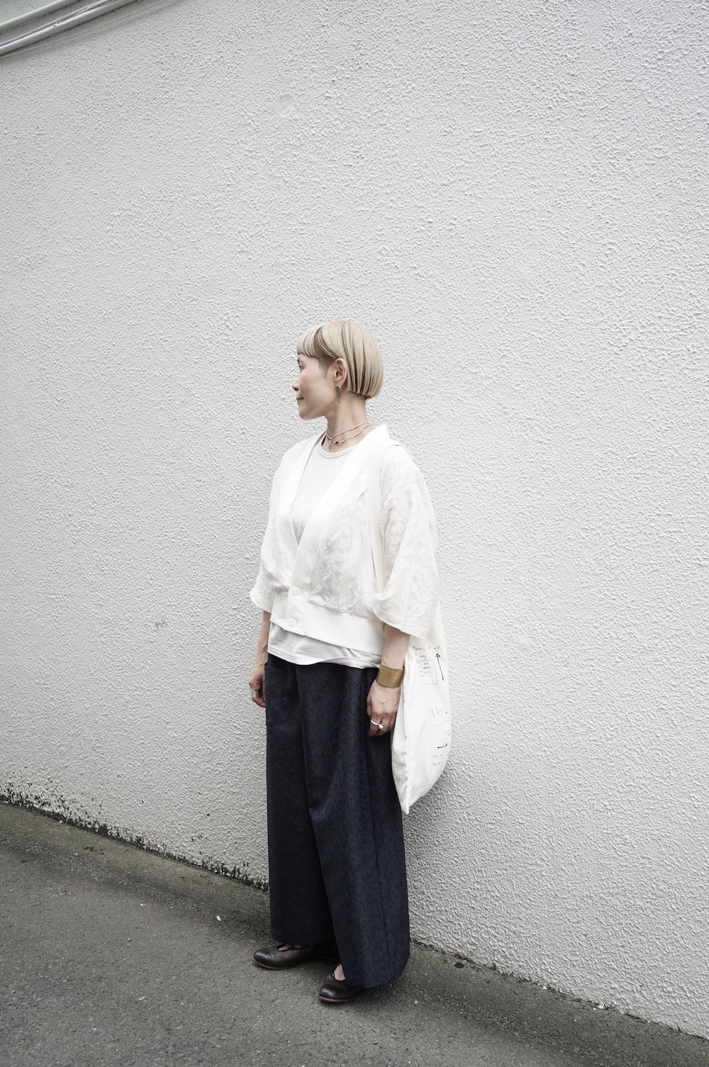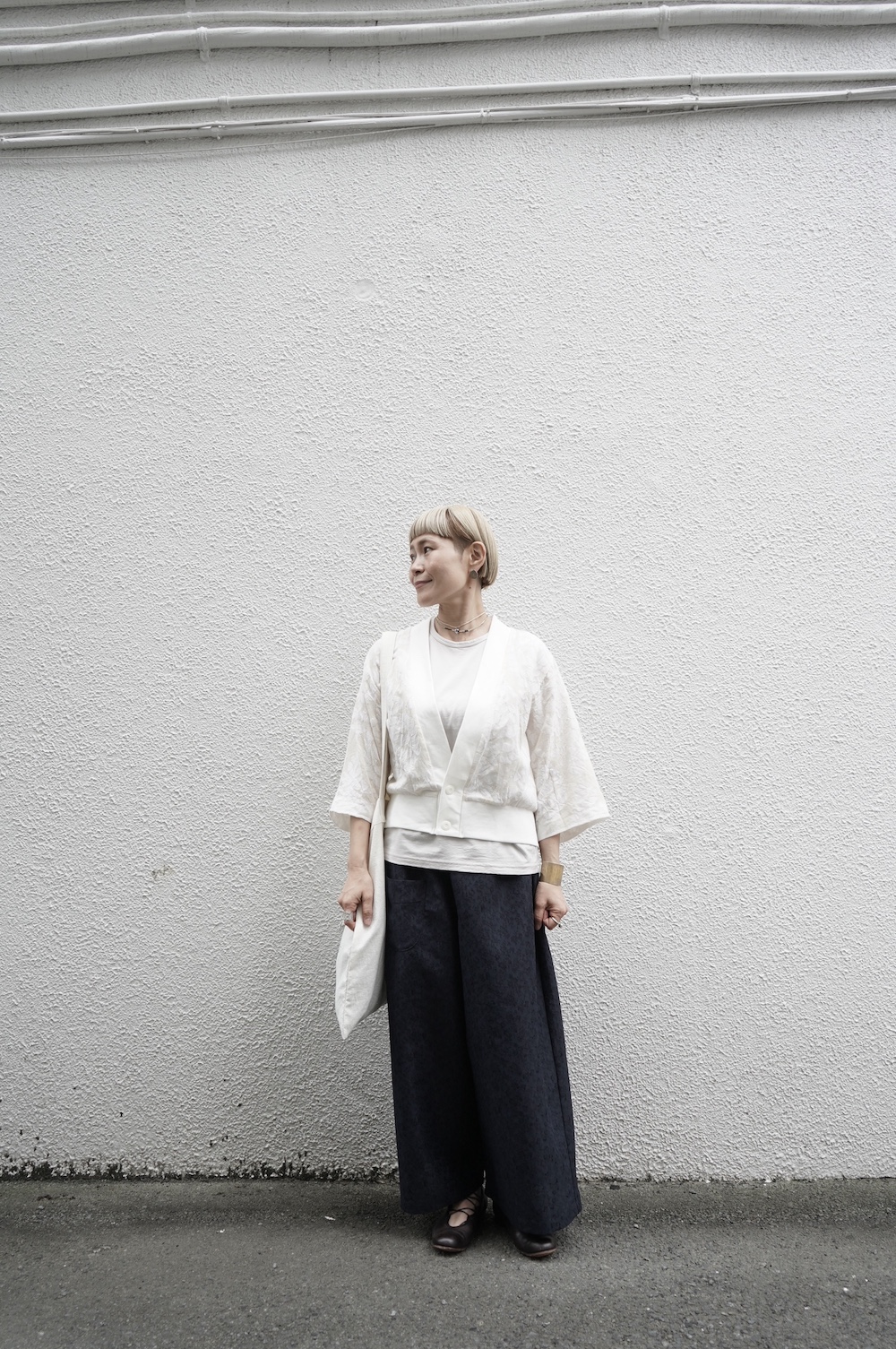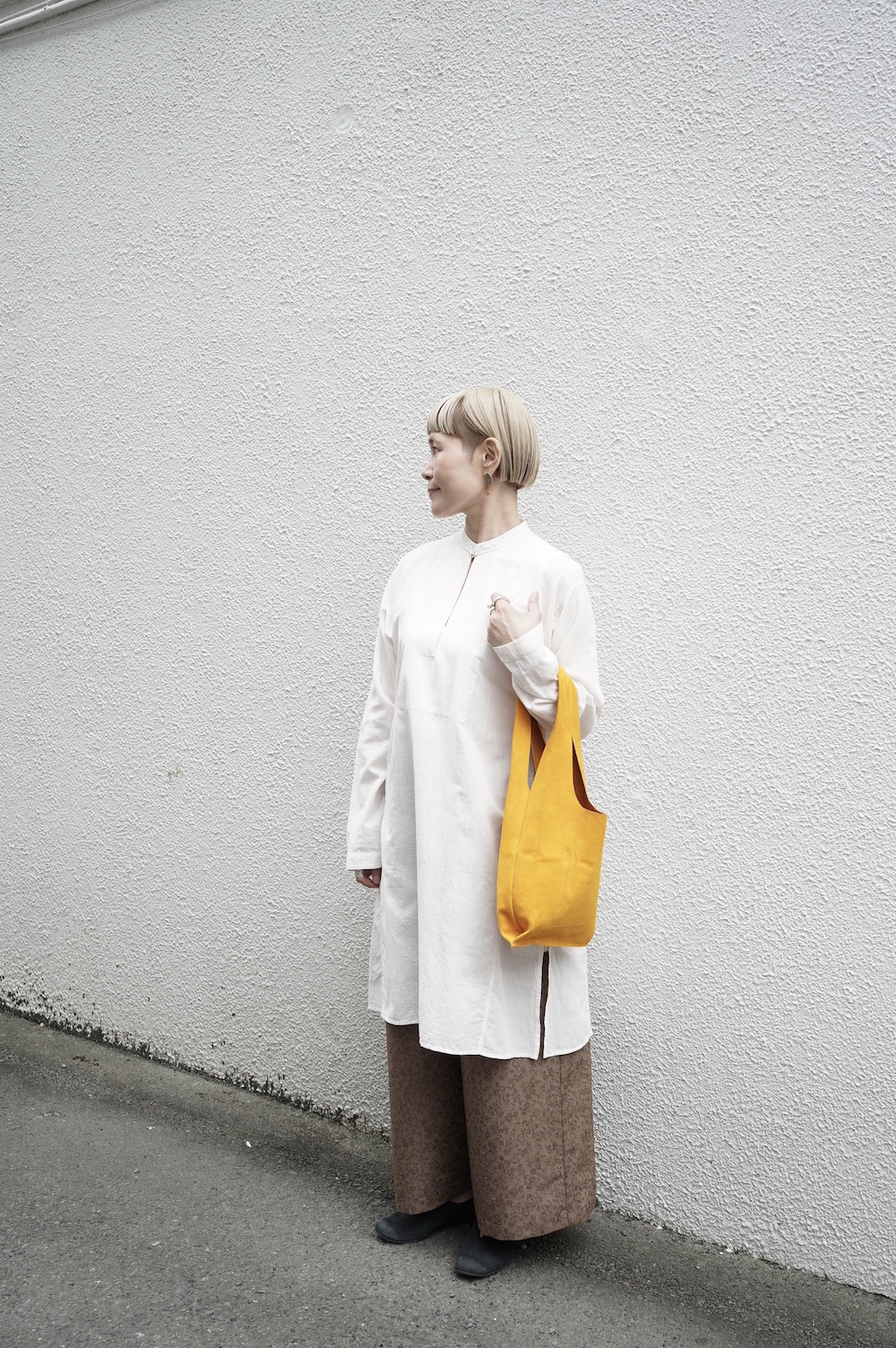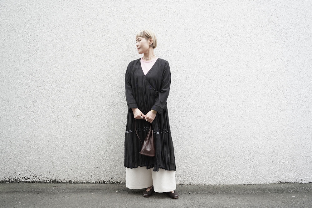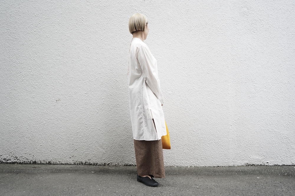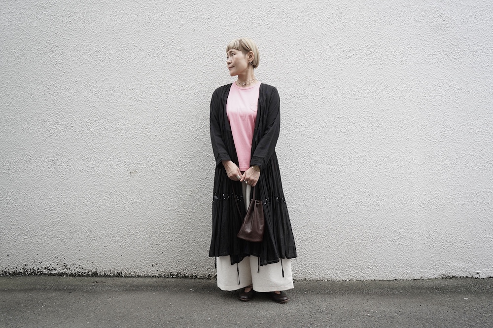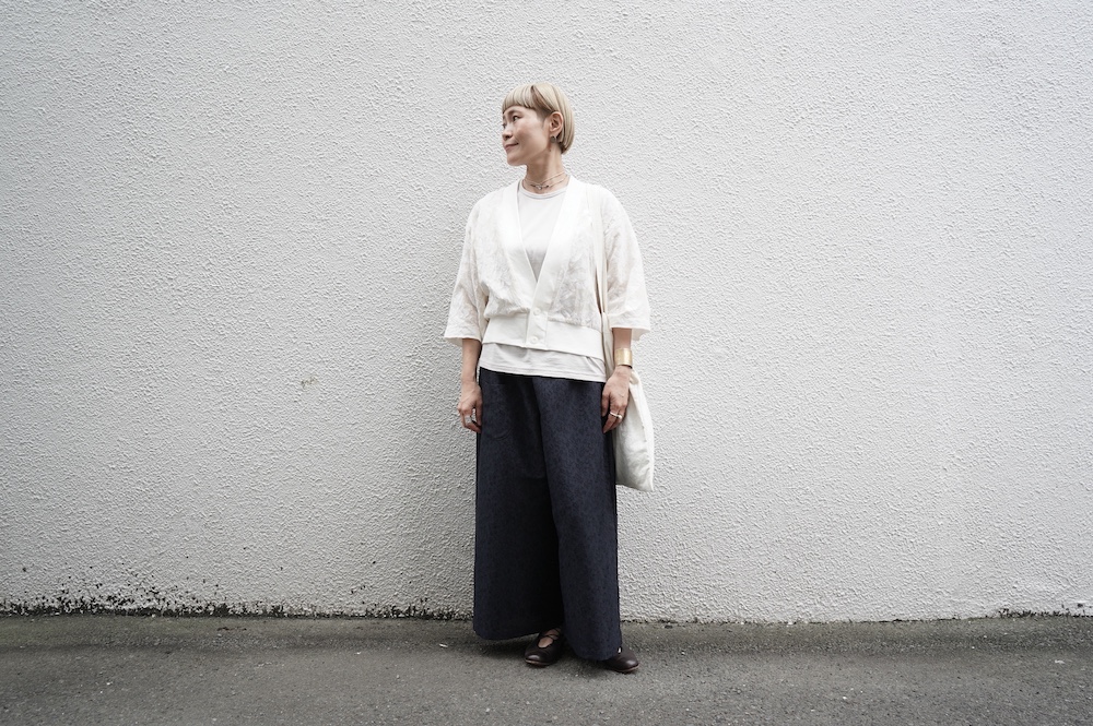 人と繋がることで生まれる価値観を大切に、モノを大切に活動していきたいという思いを込めて、”結”というブランド名で2020年1月にスタート。お洋服についているブランドラベルには、象形文字で”結”が表現されています。手作業にもこだわり、ブランドラベルのワッペンは1つずつ手作業でミシン刺繍・取り付けまた機械付けが主流の釦も手作業でしっかりと行われています。とても真摯に日常に寄り添う服作りをされている、これからも楽しみなブランドです。